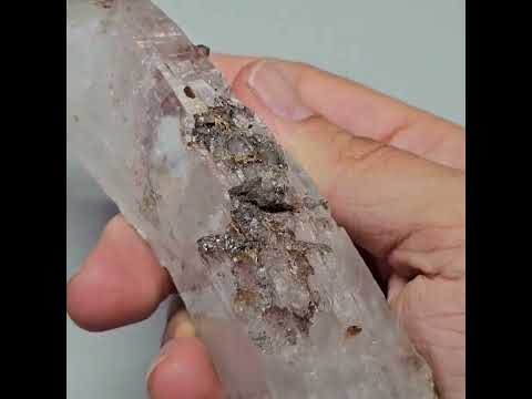 Crystals that are healed hold a certain poetic charm, both in the concept of a the crystal overcoming a break or interruption in its growth, and in the reality that there is often a pronounced change in direction when that growth begins again. This crystal is a beautiful example of both concepts with a clear angular shift in direction that allows it to sit comfortably in your palm. The backside has a cluster of iron-rich inclusions, and the exterior of the entire crystal has beautiful natural textures to contemplate as you sit with it.