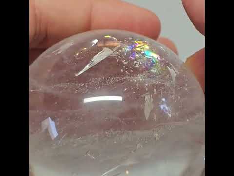 A single prominent candle-flame of rainbow brilliance shines out from inside this delicate little sphere, pulling focus and lighting the way. 🕯️This is the third of a grouping of three spheres that found us, all with uniquely shaped rainbow inclusions. Small but mighty, this is a great sphere to work with as a little crystal companion.
